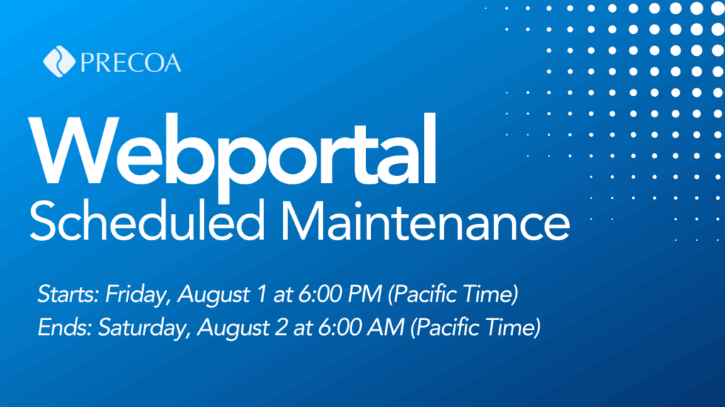 Please be advised that some Precoa applications will be unavailable or intermittently responsive from Friday, August 1 at 6:00 PM (Pacific Time) to Saturday, August 2 at 6:00 AM (Pacific Time) due to scheduled system upgrades. The two applications being updated are the Directory application and the Academy application accessed via the web portal. Other systems such as the web portal or mobile app may also be intermittently available or offline in the process.